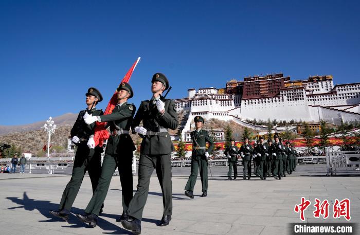 28日10时整,“3·28”西藏百万农奴解放66周年“升国旗、唱国歌”典礼正在布达拉宫广场举行。正在湛蓝晴空的映托下,五星红旗冉冉升起,200余名各族代表配合这一庄沉时辰。布达拉宫广场空气庄沉肃穆。身着节日盛拆的农牧平易近、披着绛红色僧衣的僧尼,各族代表划一陈列。步队中,也有朝气兴旺的10后青少年代表,他们配合逃想汗青,