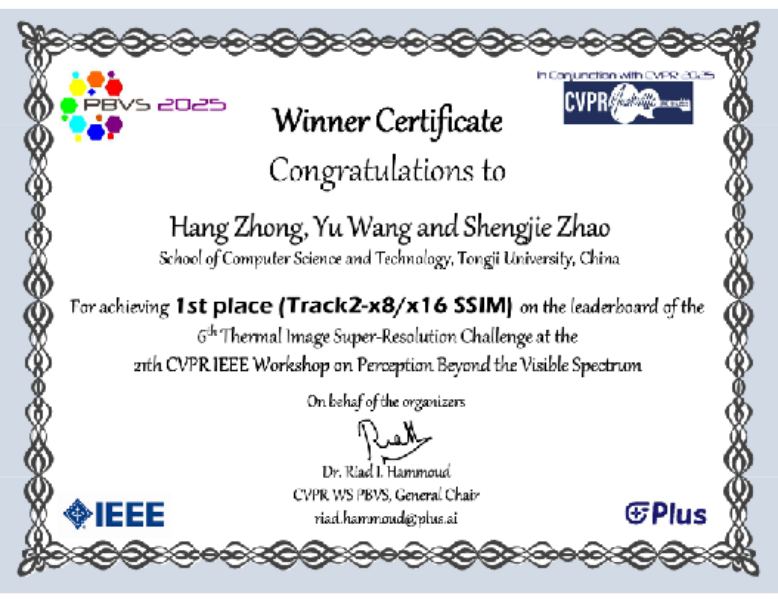 本次CVPR“热红外图像超分辩率挑和赛”中,两大手艺赛道吸引了全球顶尖科研团队比赛。正在赛道1中,赵生捷传授团队立异性地提出基于Swin Transformer的多阶段图像超分辩率模子,通过多条理、多粒度特征提取和跨标准特征沉建冲破了手艺瓶颈。正在竞赛中展示出显著手艺劣势,最终以28。52 PSNR(峰值信噪比)取0。847 SSIM(布局类似性指数)的优异目标斩获赛道冠军。针对保守算法正在热图像高频细节恢复中存正在的纹理恍惚、边缘失实等痛点,最终实现了SSIM的最优机能,斩获了该赛道冠军。